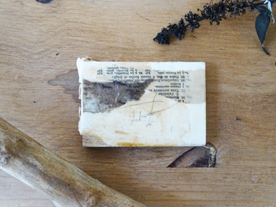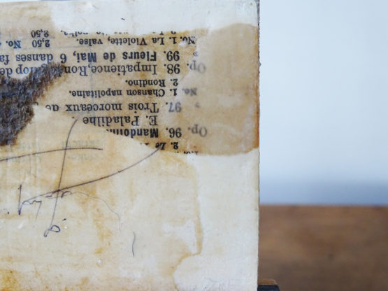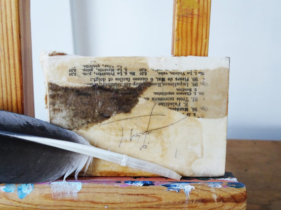 ‘Capturing Time’: mixed media collage op houten plaat met een laag van wax als finish.
