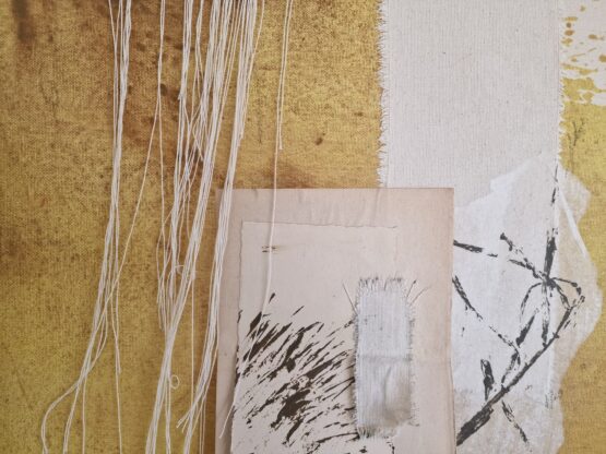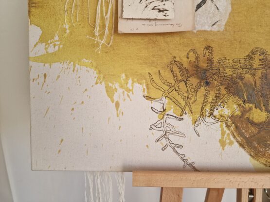 Materiaal: Mixed media op rauw katoen