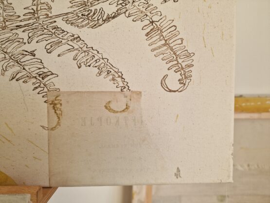 Deze schilderijen zijn als schetsboeken: losse vogelstudies, kleur­experimenten van tinten die ik onderweg tegenkwam, geschreven woorden en gedichten, en collages met fotografie of gevonden bladeren.