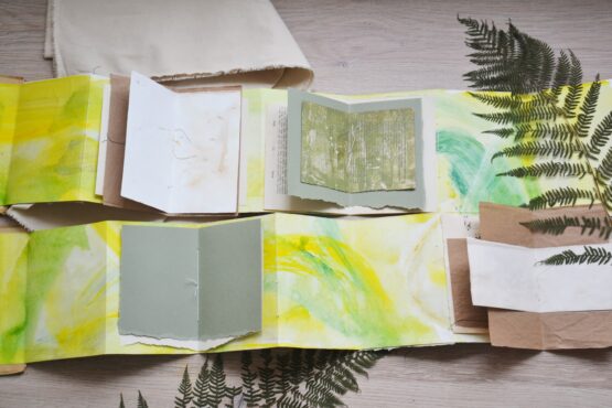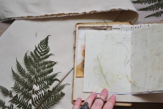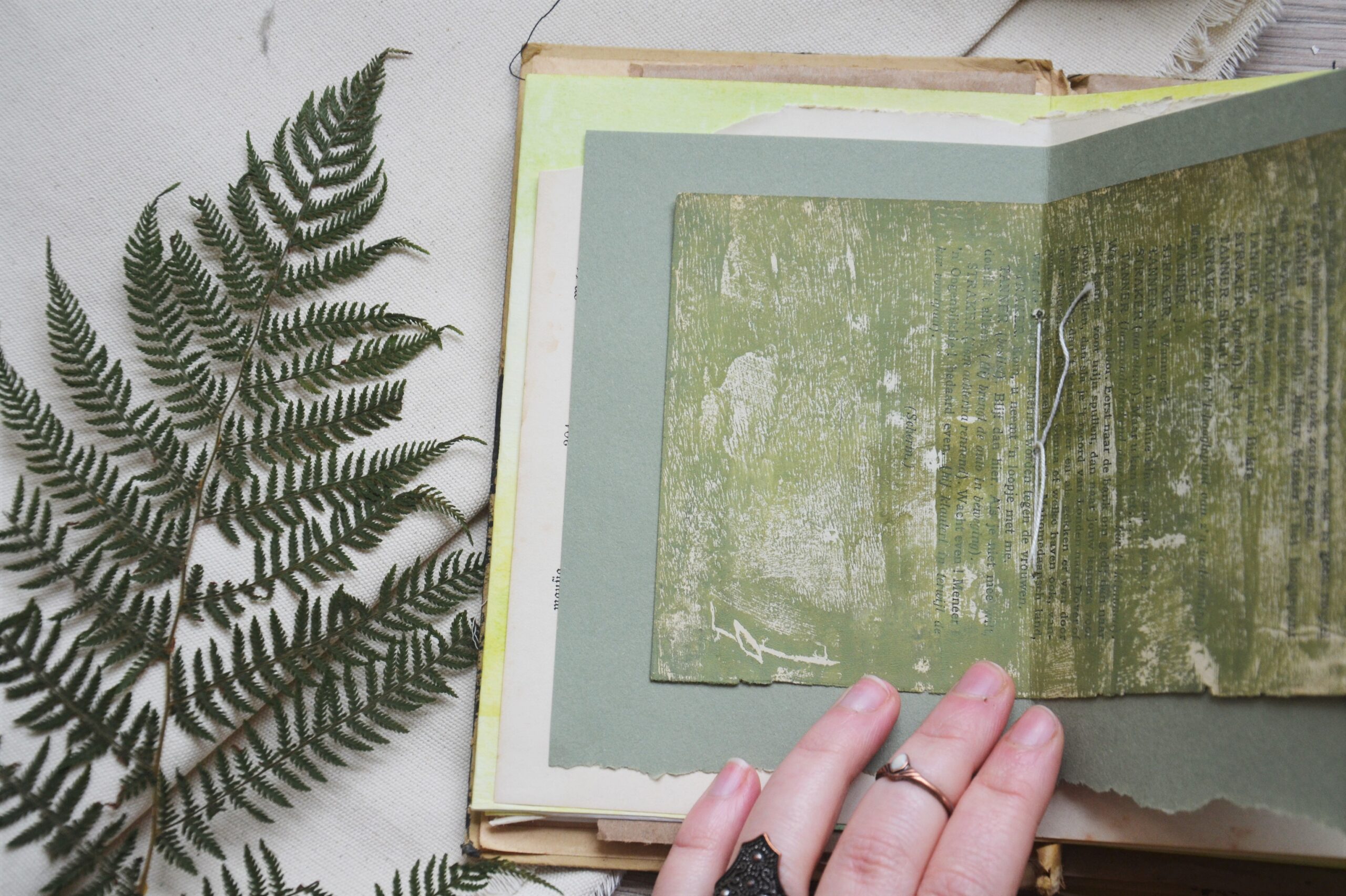 Met de hand genaaid en gevuld met een schat aan bijzondere papieren: oude boekbladen, ecoprints, stofjes en texturen. Elk journal is een ontdekkingsreis, een uitnodiging om te spelen, te bewaren en te verbeelden. Je kan het boek namelijk op allerlei creatieve manieren ontvouwen.