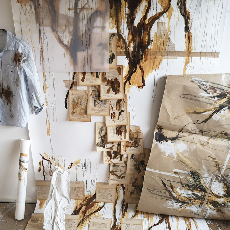 De lijnen in mijn werk zijn als wortels en takken. Die elkaar helpen om te groeien en overleven als boom. Dit stelsel aan wortels zijn haast als een gemeenschap, net zoals onze maatschappij. Hoe ze voor elkaar zorgen en samenwerken. Net zoals de manier waarop mensen elkaar beïnvloeden en met elkaar omgaan. Elkaar aanraken.